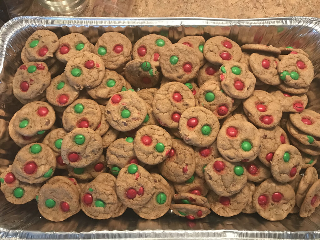 Over the years, lots of things have changed, my nieces are old enough to do more than put M&Ms on top of the cookies, we have a cookie scoop that is perfectly measured to keep all the cookies the same size, we use silicone baking mats and have a convection oven so the cookies bake evenly, we have a professional size mixer…even though I can’t use it because I still haven’t graduated to “mixer”.